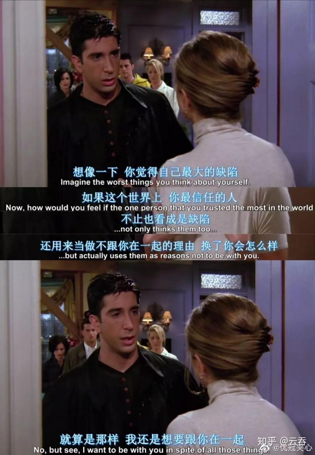 Friends老友记我大学到现在做的一件在朋友眼里堪称变态的事情就是,老友记整整10季,我到现在看了第8遍了,还差2遍就十全十美了。老友记是经典中的经典,是最适合学习英语的情景喜剧。虽然还有类似于和生活大爆炸和破产姐妹等等,但是我觉得这两部不太适合学习口语,因为真的语速太快了,里面也有很多美国国家文化的梗可能不容易get到。我当时是因为听到我大学的一个老师说她朋友为了学习口语把老友记看了10遍,我当时心里肃然起敬,那时心里默默立下了flag,我也要看10遍。?永远的女神,詹妮弗. 安妮斯顿
