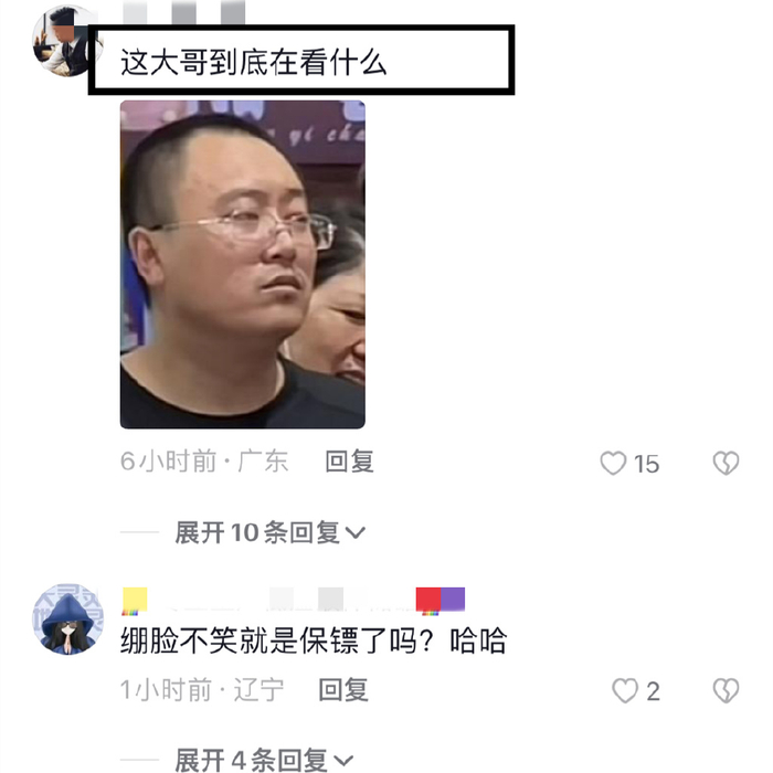 按理来说,两人的狂欢应该是全场的焦点,但站在两人中间的保镖却太出镜,不知道是不是因为职业的原因,还是说原本的神态就是这样,他将手放在前方,眼神凝视四周,一副漠不关心的样子显得另类且霸气。