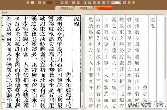 可以实现原图显示、文本显示、图文并排显示等不同显示方法,同时实现古籍原版图像和现代文字的逐字逐行对照。