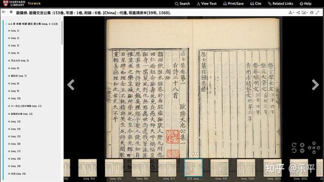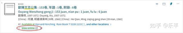 在HOLLIS的搜索框中直接输入想要查阅的古籍(中英文皆可)。单击“View Online”(如果有的话),就可以在线浏览了。比如下面这个~