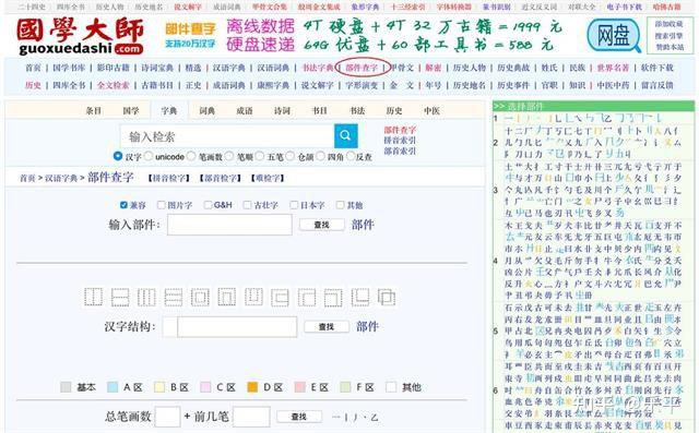 最上方倒数第五个“篆书识别”,可利用输入部件的方法查询小篆(《说文解字》中的字形),但使用前必须先安装网站提供的“说文小篆”字体。由于字体显示仅支持IE内核的浏览器,Safari用户表示略感无力。