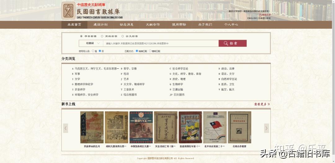 登录南京大学图书馆专业服务门户,数据库检索中搜索“瀚文民国书库”