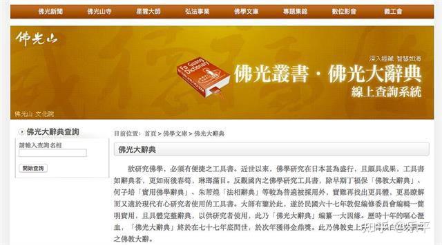 《佛光大辞典》的线上查询。必须用繁体字输入才能搜到结果。