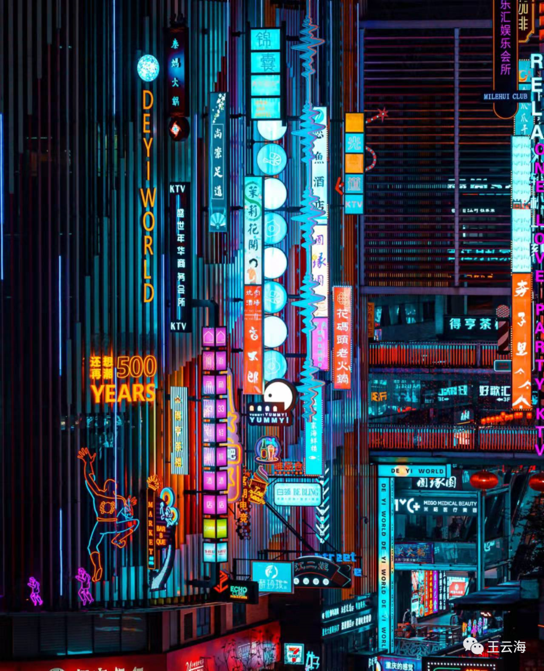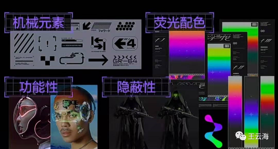 趁着清明疫情出不去,我看了《攻壳机动队》。在这部电影中,东京定义了什么是“Cyber-”,代表着高科技和神秘,而作为三不管的九龙城寨,就定义了什么是“Punk”。九龙城寨冲刺着毒品、妓女、赌博、黑帮、无证的医生等特点,这是一种混乱且低的生活状态。7.Pop的赛博朋克今天的赛博朋克成了时尚的宣言,商业的配方。没有人关心赛博朋克意味着什么,在文化破圈的过程中,为了方便大家记忆。标签就开始出现,比如我文章开头的“高科技、低生活”,各种平面视觉中的霓虹灯、全息投影、迷幻的色彩、机械元素、大高饱和度低明度的颜色、失真的字体等等。1.颜色:高饱和度图片