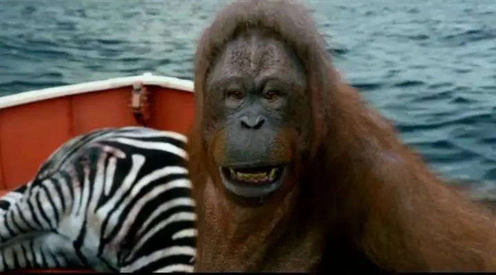 在漫长的漂流过程中,理查·帕克让Pi没有时间思考死亡,它激发了Pi活下去的意志力,而且是一起活下去的意志力。到后来,Pi和帕克甚至形成了某种命运共同体(当然,你也可诠释为Pi与内在自我和解),他对帕克说的话都是“我们”,在看到远方油轮向自己靠近时,以为获救的他说的是“我们成功了!我们获救了!”,当希望变成失落,他对帕克说:
