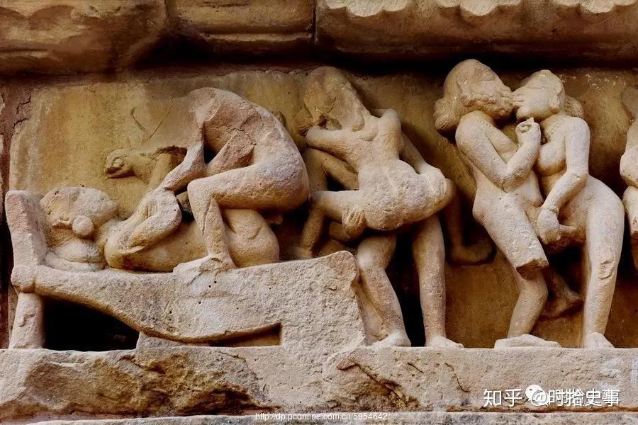 最后,《欲经》中流露的印度独特的宗教和哲学观也值得我们深思,它坦诚地将欲望与美德相并列,并不排斥人们追求现实的幸福,这说明在当时宗教严格控制思想的印度社会,却对于性欲保留着极大的包容度,性是美好而且值得歌颂的,它并不应该被当成低俗的温床,更不是任何羞耻的代名词,因而性爱艺术得以在印度文化中占有重要地位。到了后来禁欲色彩较重的伊斯兰统治时期、性观念相对保守的英国殖民时期,印度的性文化氛围被有所遏制,但是也并没有被完全中断。印度有名的性庙,图源网络