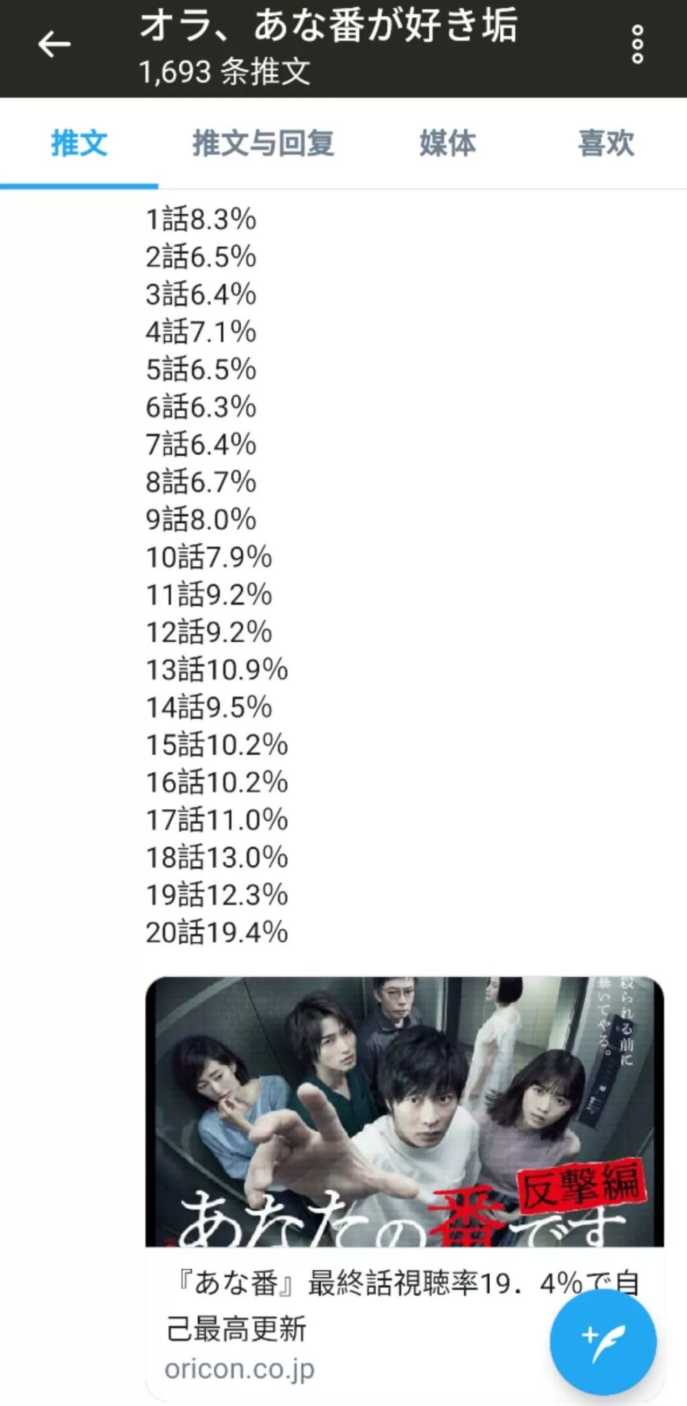 《轮到你了》大结局取得了19.4%的高收视率,不仅是全剧最高收视,也是日本电视台“日十”档自2015年开始播出电视剧以来,所出现的最高收视。
