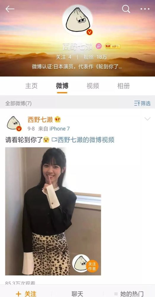 毕竟,在《轮到你了》播出期间,西野七濑在两国的人气都有提升,甚至7月在新浪微博开设了账号,如今的粉丝数已有18万。