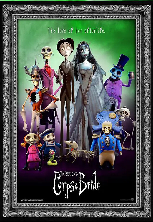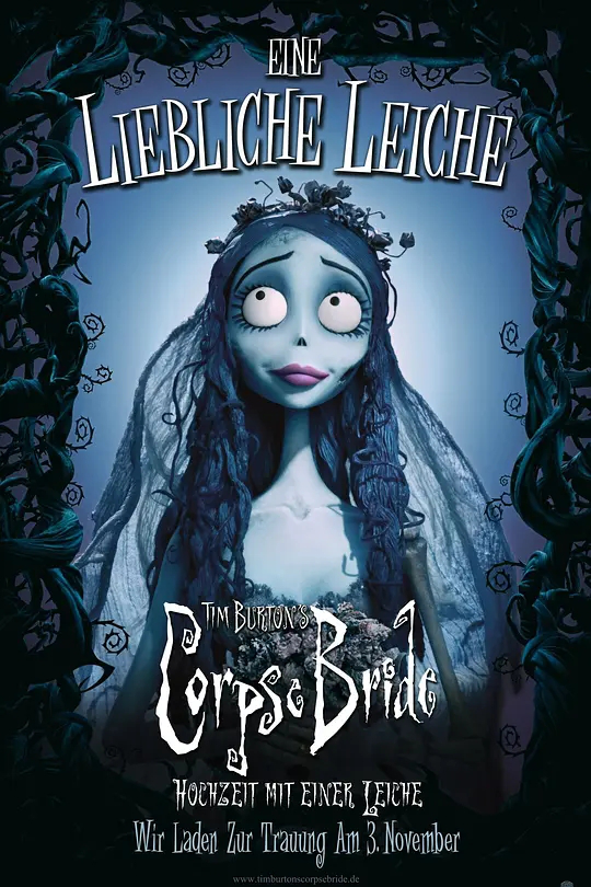 《僵尸新娘》于2005年上映,由著名的演员约翰尼·德普,海伦娜·伯翰·卡特配音,不同以往的是这部电影是一部人偶动画,每一帧都是由真实的人偶拍摄而成的,每一个人偶不锈钢骨架覆盖硅树脂制成的。为了使人偶产生表情上的变化,人偶制作师把机械装置安装在人偶的脑袋当中,从而产生表情上的细微变化。导演为此花费了十年时间进行人偶和场景的制作,僵尸新娘上的面纱和花冠就用了10个月的世界制作完成。