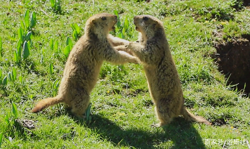 不过某些种类的土拨鼠社交和打架时的行为表现差异并不大,像是劝架视频中的喜马拉雅旱獭,作为生性温顺的啮齿动物,它们打起架来的样子就和视频里一样喜感。